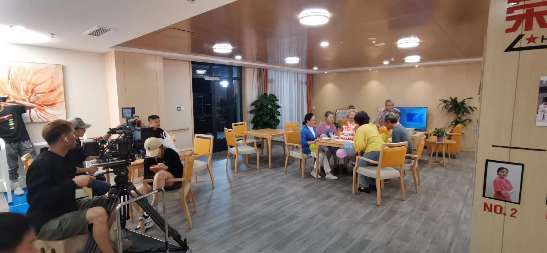 國壽嘉園是天津高端社區(qū)型新業(yè)態(tài)養(yǎng)老項目,投資數(shù)十億,欲打造全國養(yǎng)老型社區(qū)典范,客戶對影片品質(zhì)提出了很高的要求。為保萬無一失,攝制組提前三天抵達(dá)拍攝地,開拍前做了大量的籌備工作,勘景、復(fù)景,尋找當(dāng)?shù)馗鞣N資源,采購服裝、道具等,甚至通過網(wǎng)絡(luò)聯(lián)系,租用了當(dāng)?shù)匾晃辉揭皭酆谜叩哪ν熊囎鳛榕臄z道具,調(diào)動拖車進(jìn)行拍攝,以呈現(xiàn)不一樣的老年生活,為保品質(zhì),不計成本。為滿足客戶需求和畫面效果,甚至還想方設(shè)法聯(lián)系了當(dāng)?shù)厣鐓^(qū)居委會,協(xié)調(diào)了一支老年人模特隊協(xié)助拍攝,與客戶一次又一次的針對各種拍攝細(xì)節(jié)當(dāng)面開會,落實所有場景、服裝、道具、人員調(diào)配等,做到滴水不漏,直到客戶滿意。拍攝自不必說,白天到夜晚,為趕進(jìn)度,攝制組每天工作不低于19個小時,但大家仍群情激昂,為出精品而努力。鏡頭的運(yùn)用也極盡溯光之可能,讓每一個鏡頭都飽含陽光的味道,溫馨而自然,輔助體現(xiàn)了對老人養(yǎng)老的溫暖與關(guān)懷。攝制組全身心的投入和堅持,最終也收獲了高品質(zhì)的拍攝影像和客戶的高度認(rèn)可,很順利的完成了最終影片的驗收。